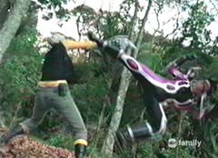 After Mora had failed Grum too many times, Grum kept his word and changed her back to Morgana. She was featured as Morgana in seventeen episodes. Morgana seems to have many enemies and allies throughout the known universe, all of whom know her well and fear her wrath. An exception to this is Doggie Kruger, who says he also once encountered her. Grum provided her with a purple battle suit she could use against the Power Rangers. The helmet activates on her command but she is often seen without it. Her adult self has a sarcastic and brash attitude. She and Piggy also seem to know each other quite well. Morgana once came close to defeating the Rangers alongside her alien partners Shorty & Devastation. Morgana was turned back into Mora as a reward after she helped acquire the stabilizing the solution to put Omni together. Mora still remains by Grum's side in the final episodes. However she is defeated and captured by Doggie Kruger in the Finale. Mora is a fantastic villainess. She's tricky, smart, also very subtle, and likes to always have a plan. She enjoys watching others suffer. Mora is played by Olivia James Baird, and Morgana is played by Josephine Davidson. Mora is the only Power Rangers villainess with child and adult forms. Her resolve is stern and strong, and her fighting is quite exceptionable. If you're not a fully trained SPD agent and haven't earned an official SPD Morpher, I highly recommend not incurring her wrath. She has earned my respect as one of my favorite Villainesses!
